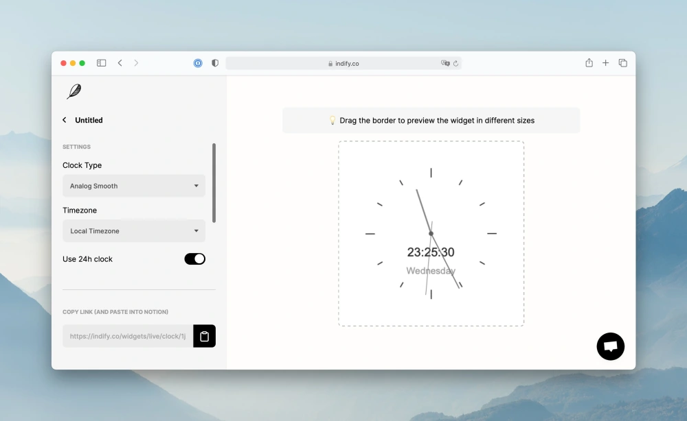 在使用Notion的时候,就曾利用 Indify 在页面中嵌入时钟、天气、时间进度等小模块,因此这个方法在wolai中同样适用。
